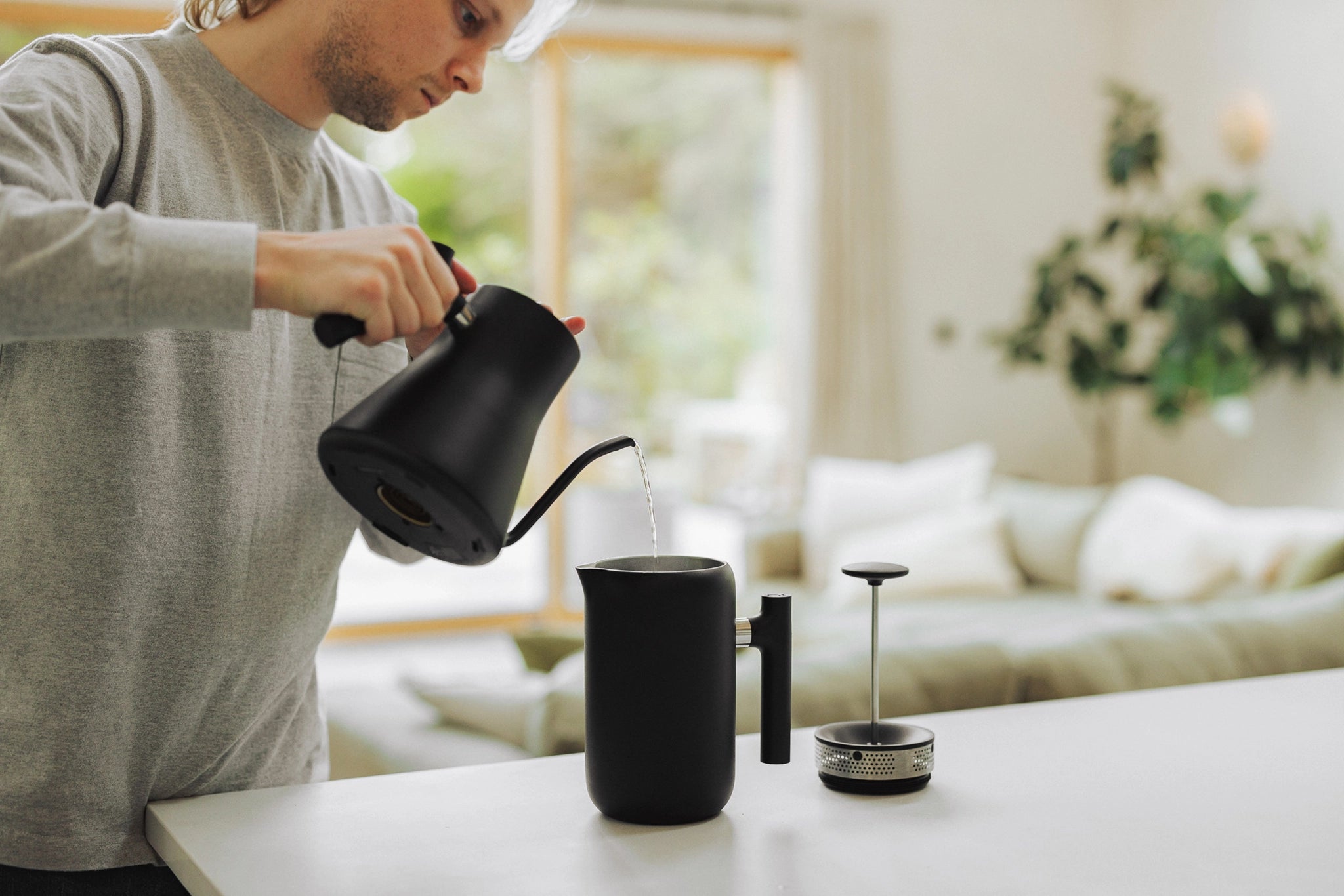 We speak a lot about quality when it comes to coffee–and the water used for your brew is just as important. Depending on where you live, the water you get from your kitchen tap can alter the taste in your cup–and that’s a big consideration when it makes up 90 percent of your coffee. That’s why we recommend filtering your water, removing organic compounds and chlorine before it even reaches the kettle. Make sure to heat a little more water than you need for your coffee, using some to preheat your serving vessel, and rinse over filter papers if using.