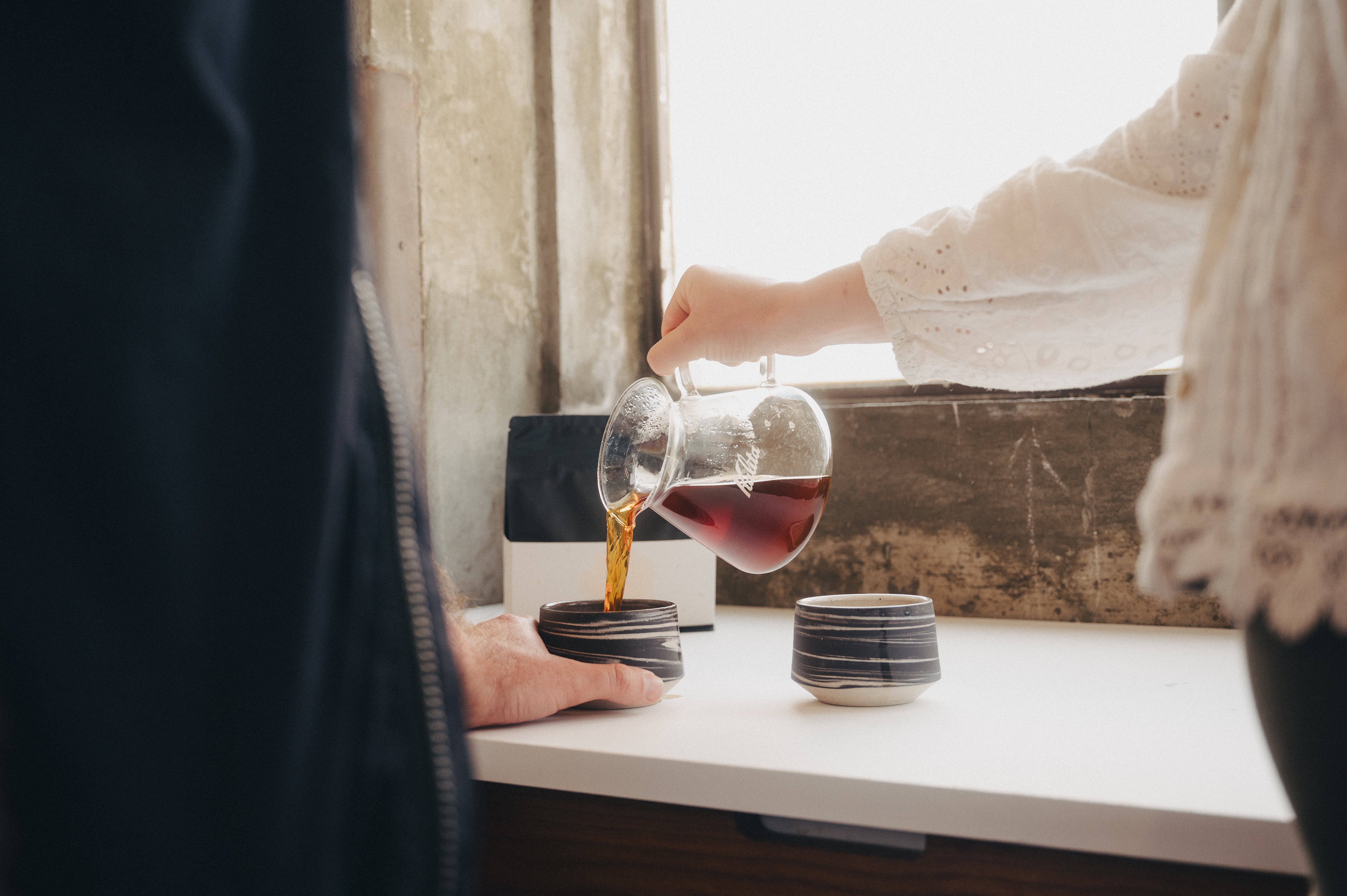 When I first sat at a wheel there was a brief moment when the clay spun perfectly centered threw my hands, that sense of movement felt wonderful. As the wheel spins it attempts to throw the clay from the wheel and the potter tries to keep it in place - this process sometimes feels like a battle, and sometimes like a dance, either way, this movement is the central process, and essentially how a pot is made. By staining clays and then combining them during the throwing process I attempt to capture this sense movement in the finished piece. A pot that reveals the process of creation. This also explains why everyone of the Origin X Crooked Clay Crooked Clay cups is subtly different.