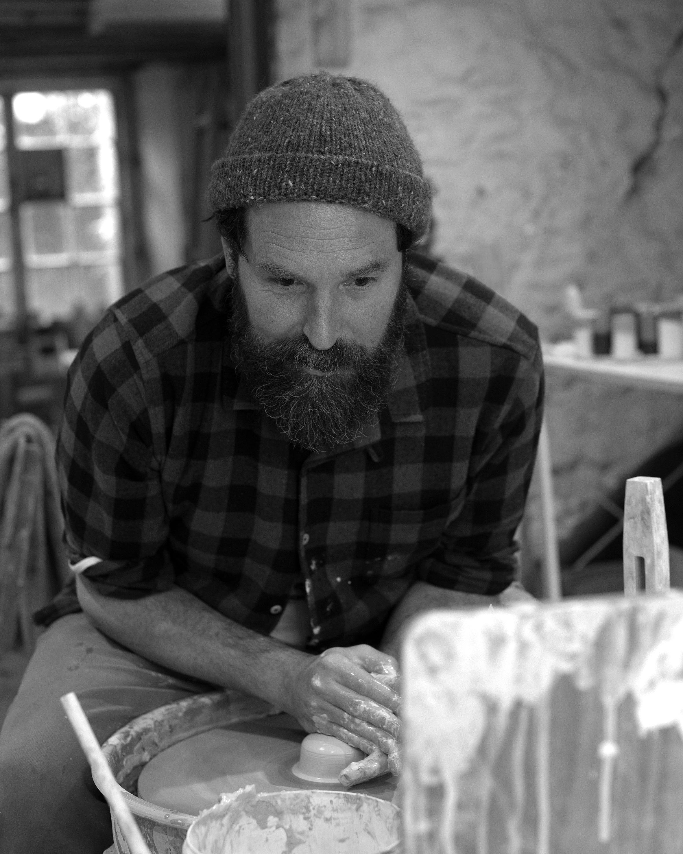 My pots tend to be made of porcelain and a few with stoneware. Porcelain is a beautiful clay to work with - it’s like throwing with butter. It can be hard to control and is somewhat unforgiving if you’ve made a slight mistake, but the feeling you get when you’ve thrown something good with porcelain is very rewarding. Stoneware clay brings a little texture to pots, it’s got a sandy feel to it and makes you think of the beach. For the collaboration with Origin, we decided a mix of the two would be ideal.