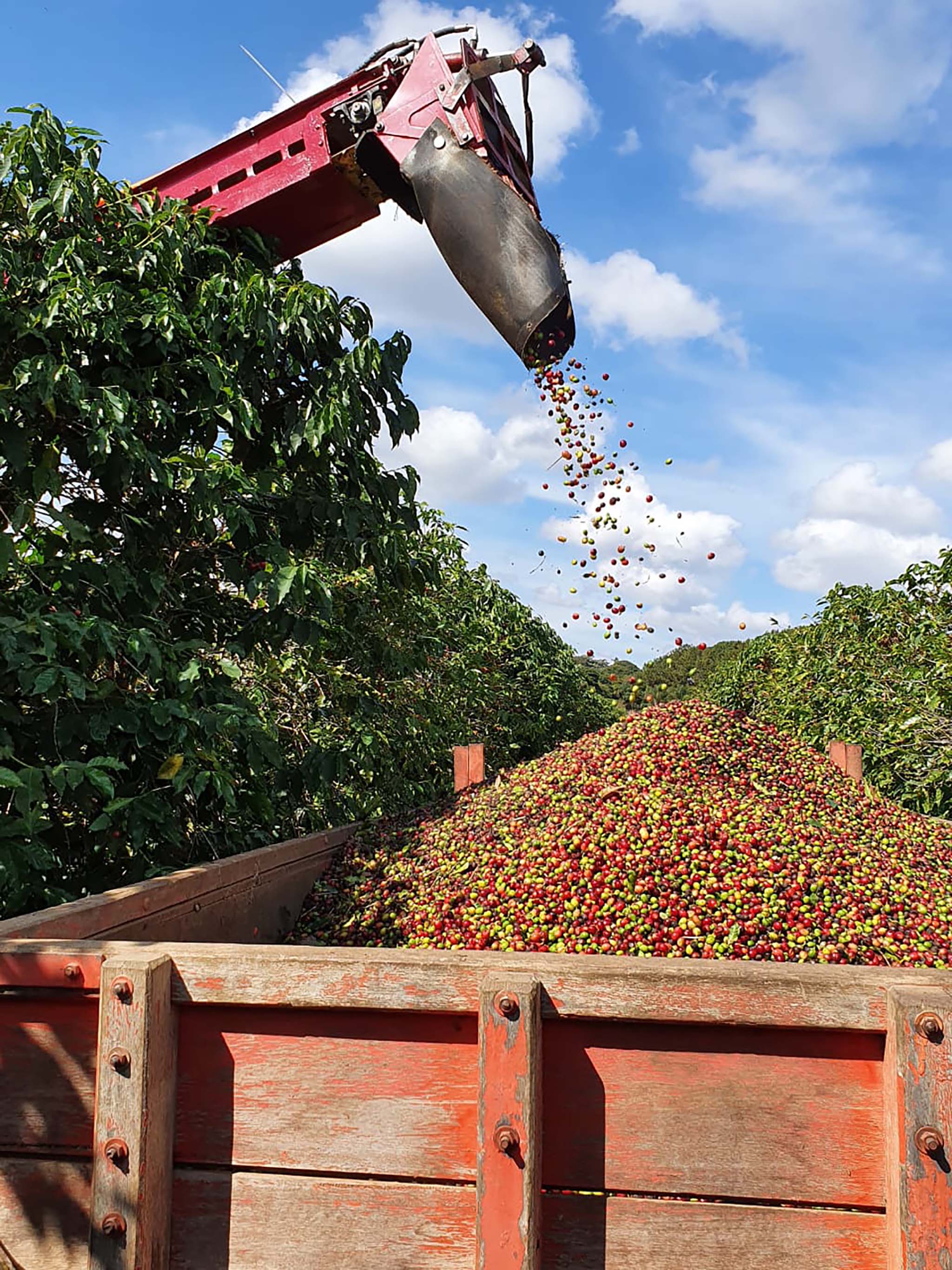 The Balachio family arrived from Italy at the end of the 19th century. At the time, there were no other producers in the area. By 1925, the family were pioneers of coffee in the region, with machinery to process the coffee, and transportation by train making export possible. Today, the farm focuses on higher speciality production, with nine full-time employees, and 15 extra workers during harvest. From traditional procedures, through to more modern machinery, each is implemented with the intention of working in harmony with the environment, supporting the highest quality coffee–separating machines designed to be more water efficient, and drying drums powered by eucalyptus wood (the trees are commonly plants on farm borders in Brazil in order to shield the coffee plants from wind while providing a good source of firewood).
