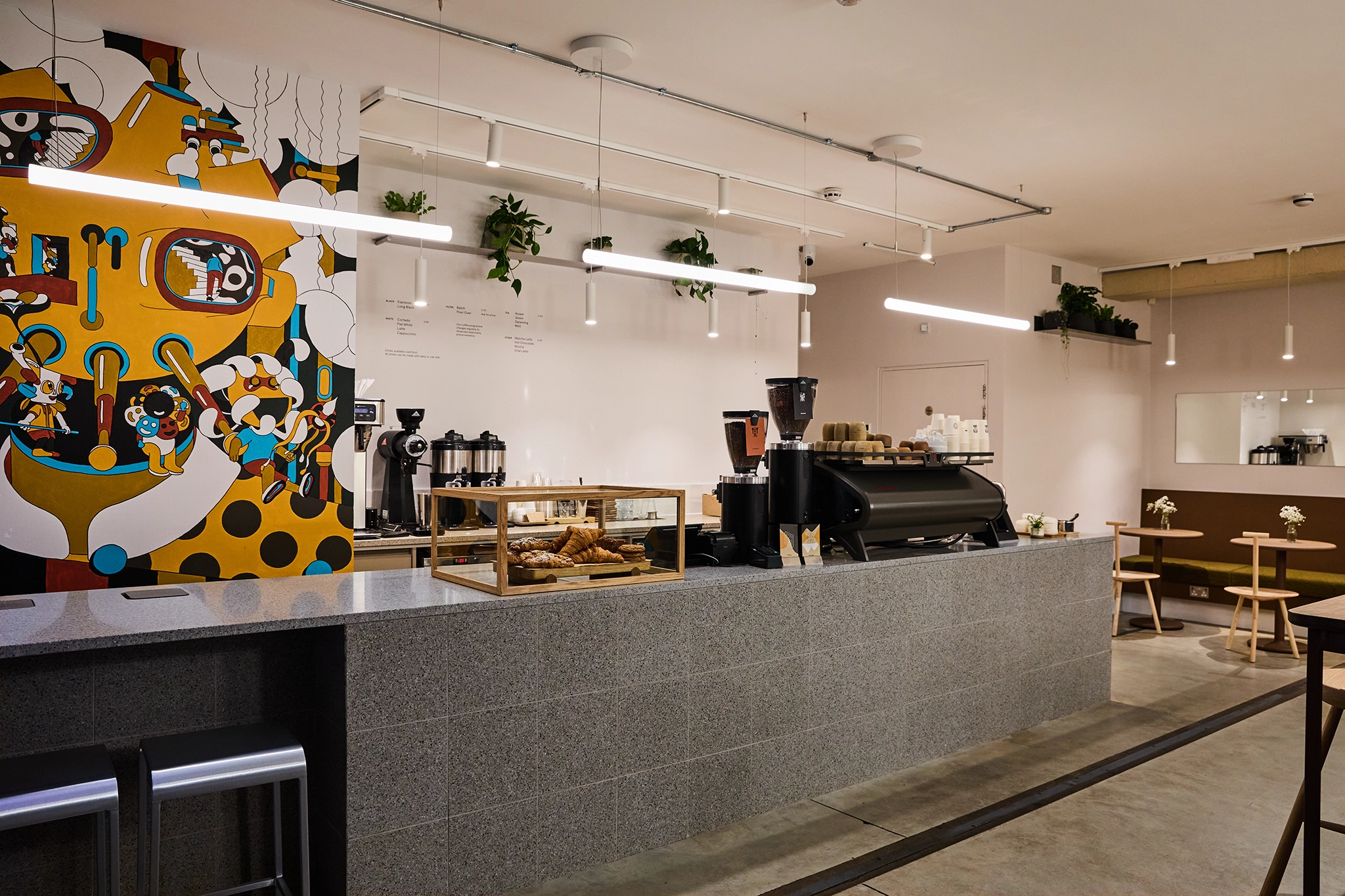 This Shoreditch cafe hosts our full range of monthly feature coffees showcasing the very best in speciality coffee. With a brew bar and illustrative mural taking centre stage, expect precision pours and artistic influences throughout.